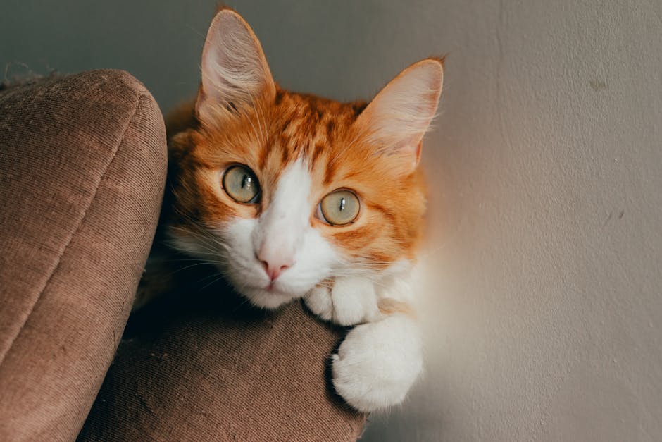 Cute Pets – A cute white kitten with fluffy fur sitting on a #6343208